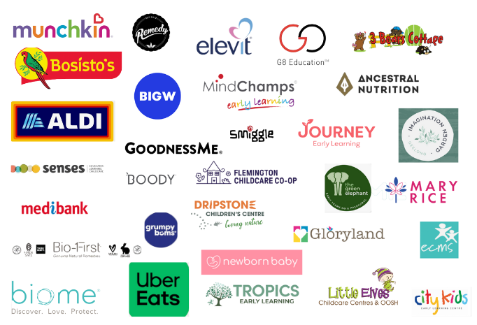 I’ve also partnered with health and nutrition-focused companies including Ancestral Nutrition, Nuzest, Nourishing Bubs, and Ulu Hye, as well as early childhood and educational leaders such as Journey Early Learning, Senses, Green Elephant, Little Elves.