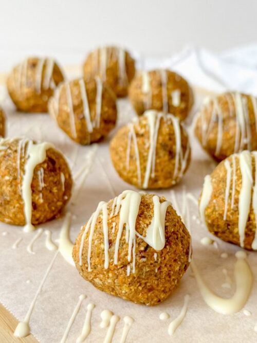 These little bites of joy are packed with immune-boosting ingredients like pepitas, fresh carrots, and a splash of orange juice, all rolled up with gluten-free oats and finished wi