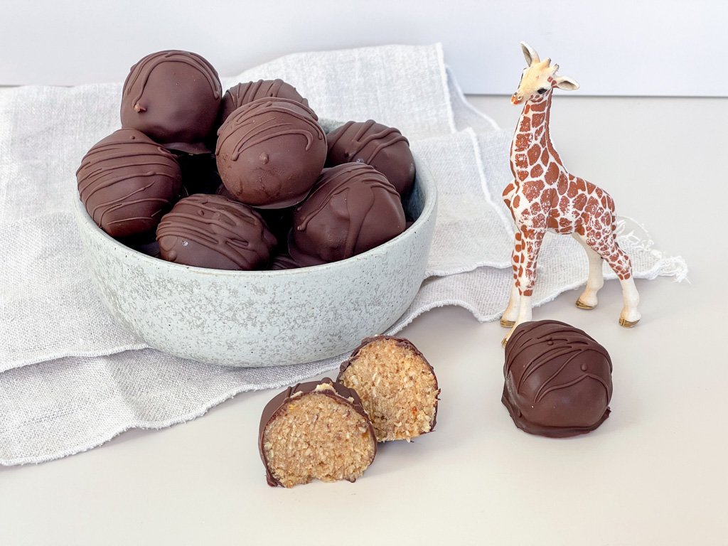 Prep tips: To save time, press mixture into a lined baking tray approx. 2 cm thick, coat with melted chocolate and freeze for 4-5 hours. Cut into squares and enjoy!