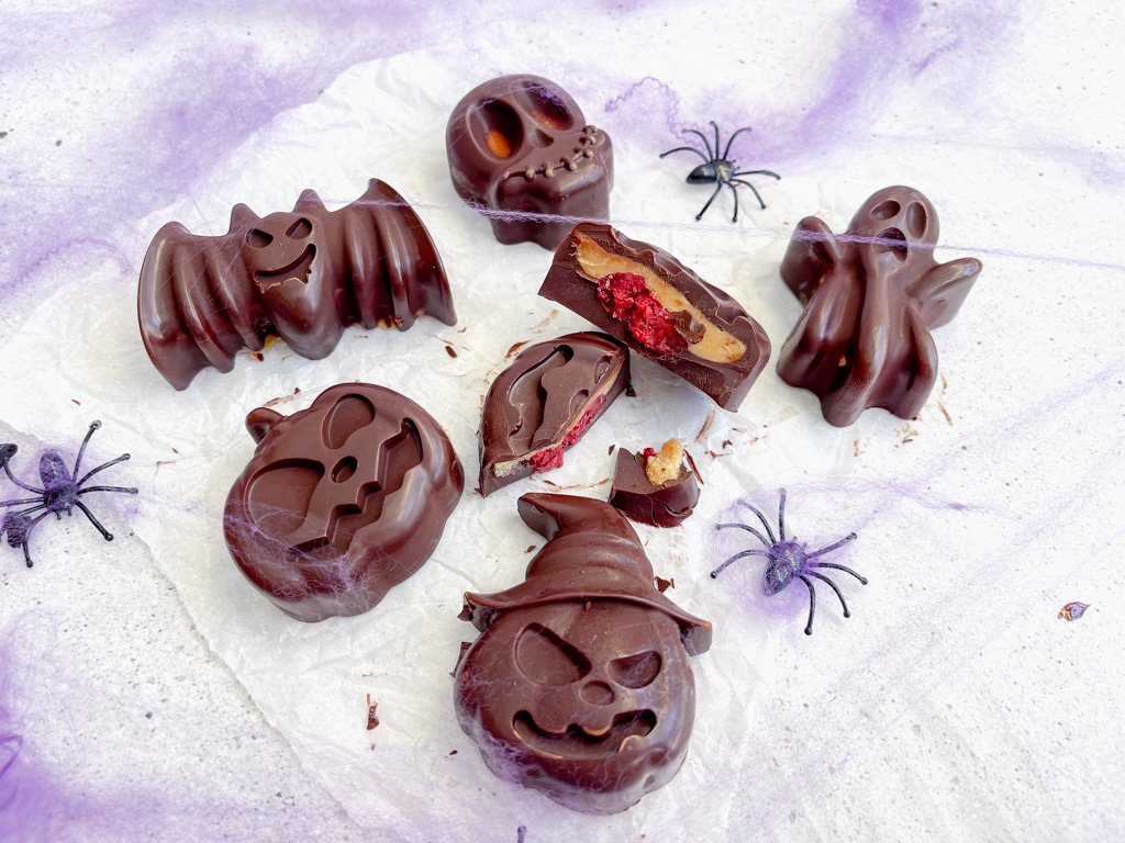 Halloween is just around the corner, and we’ve conjured up the perfect treat for your little goblins and witches – Peanut Butter & Jam Cups! These delicious dark chocolate treats filled with homemade raspberry chia jam and smooth peanut butter aren’t just a tasty way to celebrate Halloween; they’re also a fantastic source of antioxidants from the dark chocolate and chia seeds, plus a dose of nutty goodness from the peanut butter. And let’s not forget the raspberry chia jam filling – it’s a berry-licious surprise!
