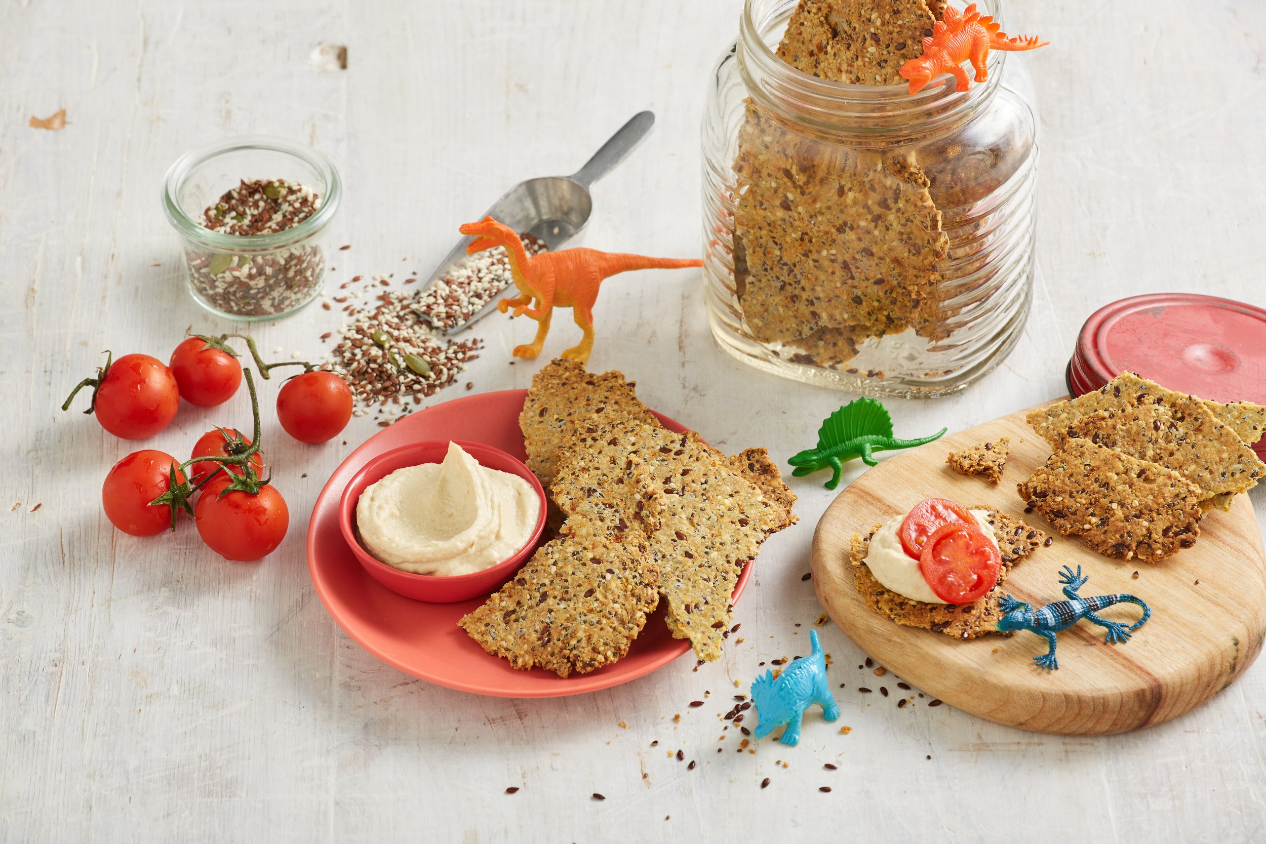 Crackers are a favourite amongst young children. However, most crackers are filled with processed flours, too much salt and flavours. These crackers are the exception and are loaded with healthy fats, protein, and fibre, and are still super crunchy and delicious. They work well in a lunchbox, and as a snack and taste delicious when layered with a healthy dip or a slice of cheese.